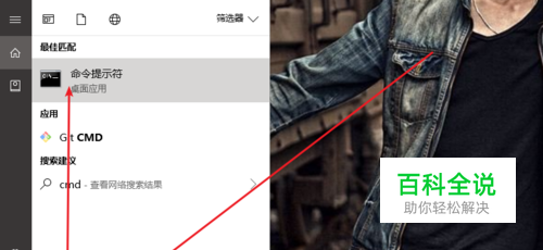 打开桌面右下角的搜索,搜索cmd,选择进入命令提示符,如图所示
