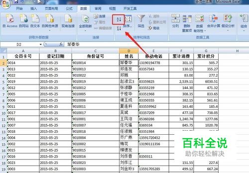 如下图,如果按D列进行升序排列,数据只是在第1行到第18行进行排序。后面的数据无法参与排序。