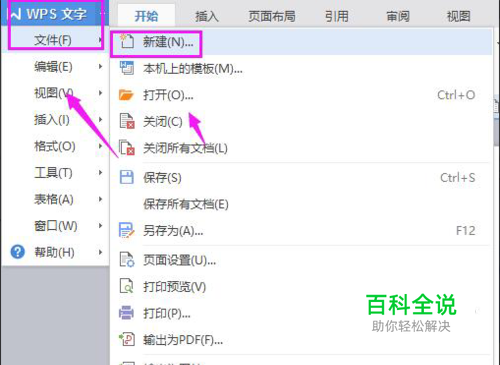 我们新建一个Word文档,打开WPS,选择WPS文字-文件-新建,如图所示。