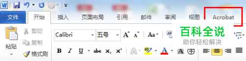 安装好adobe acrobat x pro之后,再安装word2010(其他版本类似)的软件界主菜单会显示“Acrobat”按钮,如下图所示。