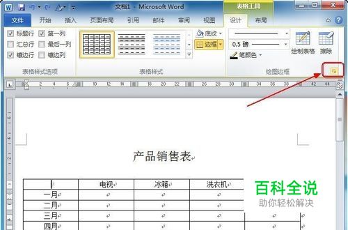 打开一个插入有表格的文档,将光标定位到需要制作斜线的表格中,单击“布局”选项卡,在“绘图边框”选项组中单击“边框和底纹”按钮,如图所示。