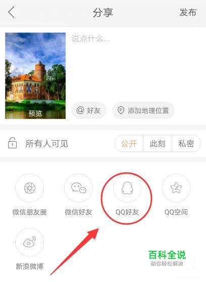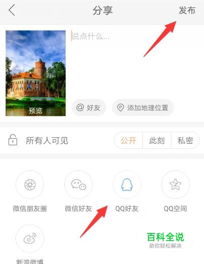 当QQ好友的图标变为蓝色后点击右上角的发布。
