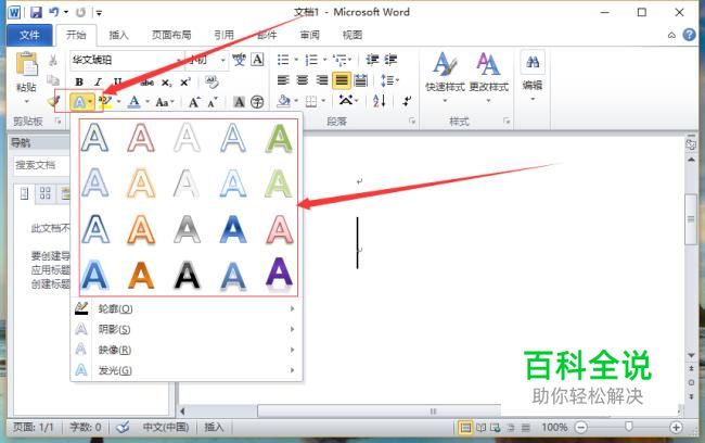 最简单的操作方法是找到文字编辑栏中文字效果,点击文字效果边上的下拉箭头,在下拉的复选框中选择自己喜欢的种类。