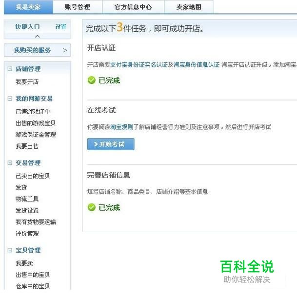创建店铺之后,需要完成一个在线考试,完善店铺信息