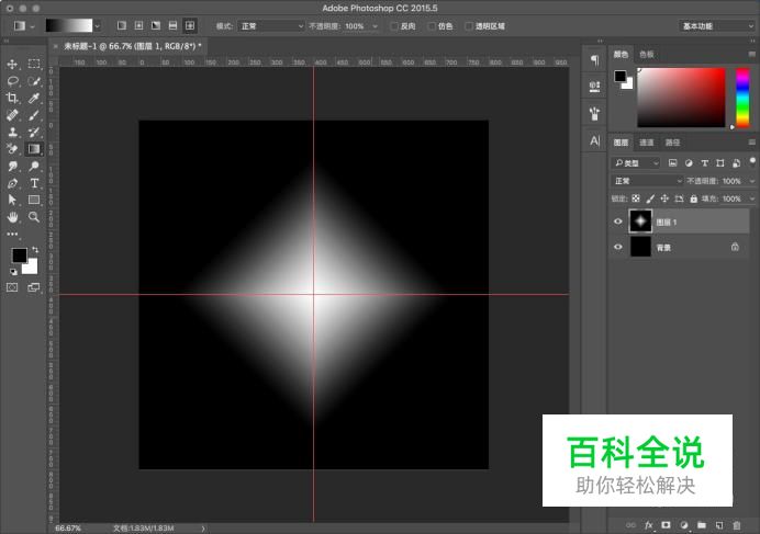 使用工具栏中的渐变工具,在中心绘制一个渐变效果,方式为菱形渐变。