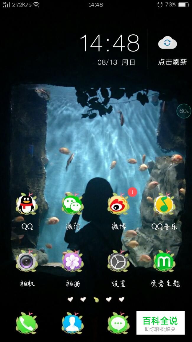 首先我们需要下载魔秀桌面这个APP,然后点击这个软件,就会进入第二张图片的画面,接着点击魔秀主题就可以进入下一个界面。