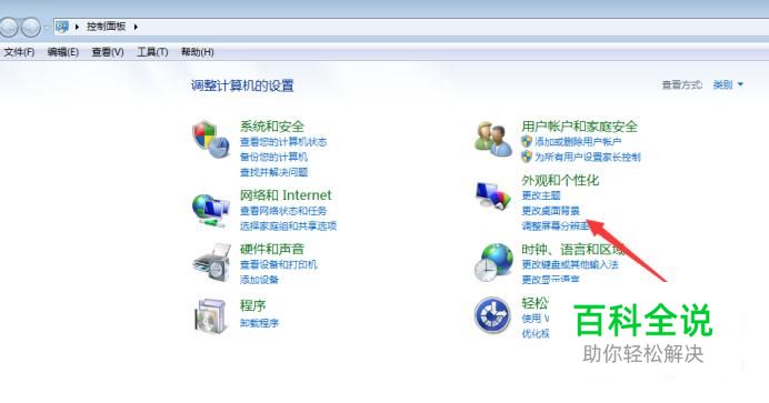 控制面板首页,点击外观和个性化中的“更改桌面背景”