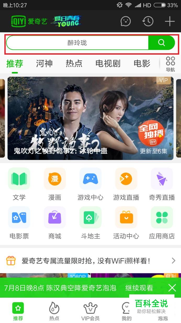 在APP首页搜索想看的视频名称并点击播放。