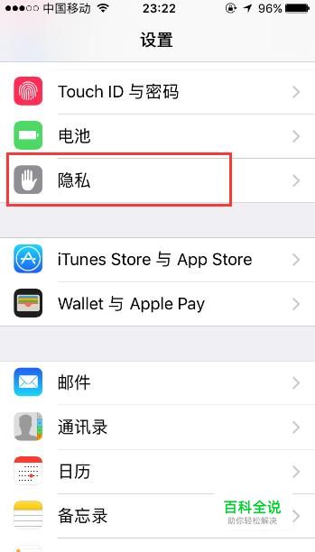 接着点击设置页面中的隐私按键。