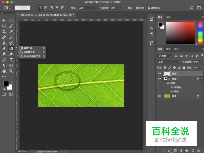 接下来我们绘制高光效果,在左侧工具栏中选择“椭圆选框工具”,然后在水珠适当部位选一个选框。