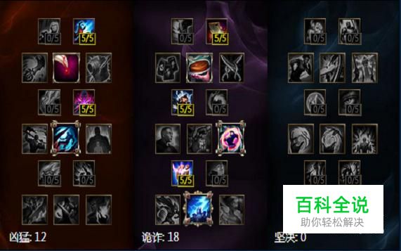 首先我们来看看小编的天赋推荐(如图) 在凶猛一类点出巫术提高了技能的法术伤害再点出盛宴来提高线上回复能力再点出先天资质提高法术强度最后点出双刃剑来强化伤害 在诡诈一类先点出野蛮这样在前期补兵时降低漏刀率然后点出秘密储备这样前期在线上换血或者对拼时可以获得优势再点出无情和危险游戏分别提高了拿到人头的几率和残血逃生的几率再点出精密让你在后期也能打出足够的魔法伤害最后点出雷霆,这个我就不用说了吧,不管是换血还是打AOE或者是秒人,雷霆都是安妮的必选。