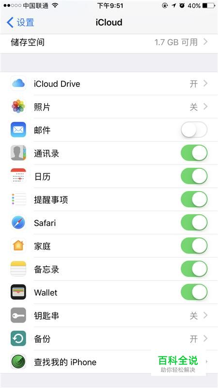 进入icloud设置界面,将“查找我的IPHONE”功能开启,以打开定位服务。