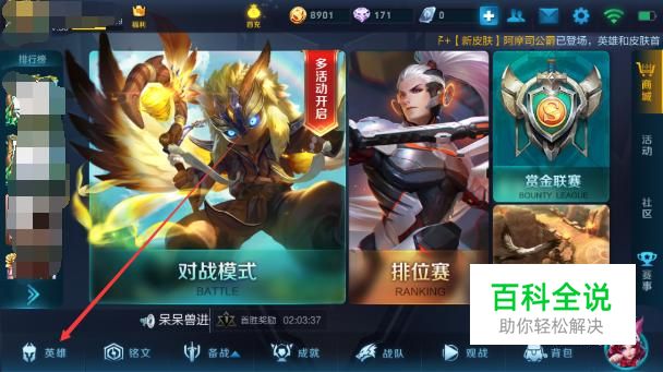要想查看某个英雄的熟练度,首先玩家必须要拥有该英雄。有了英雄后可以点击页面下方的“英雄”按键。