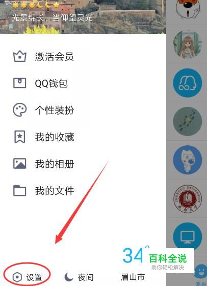 登录QQ号之后在QQ页面右滑,打开设置。