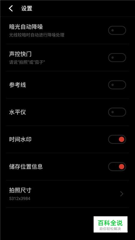 在相机设置界面中找到“时间水印”选项,将右侧滑块关闭。