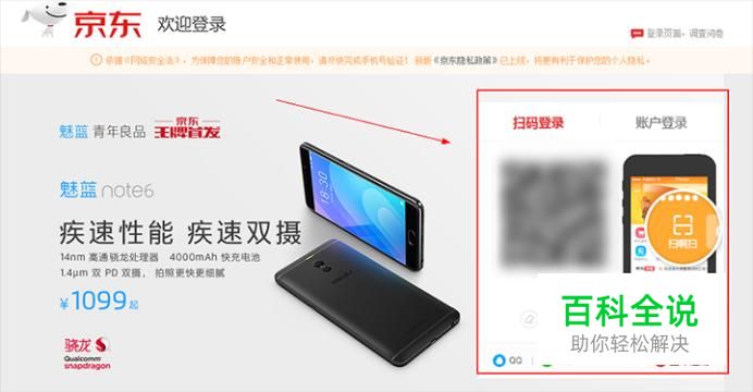 进入账户登录页,可通过手机京东进行“扫一扫”登录,或者通过输入帐号密码登录。
