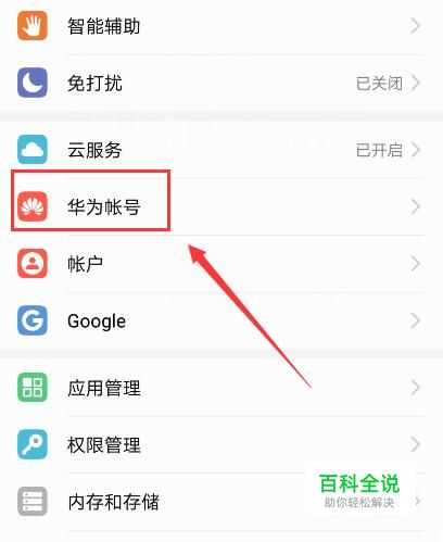 打开手机设置,找到“华为账号”。