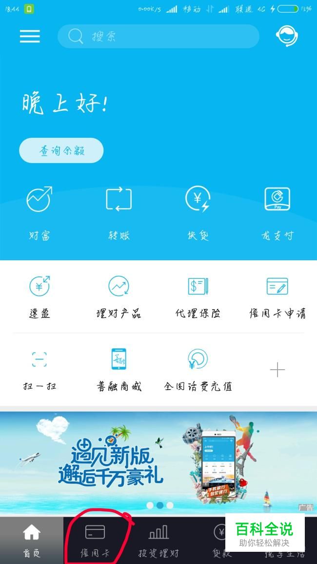 进去首页,最下面的一栏有一个信用卡,点击这个