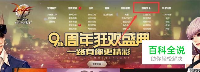 进入到官网也面后,我们在网页的顶部找到“游戏安全”,然后点击进入。
