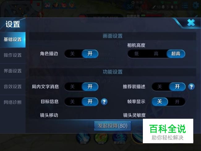点击右上角的“设置”按钮查看投降时间是否达到。