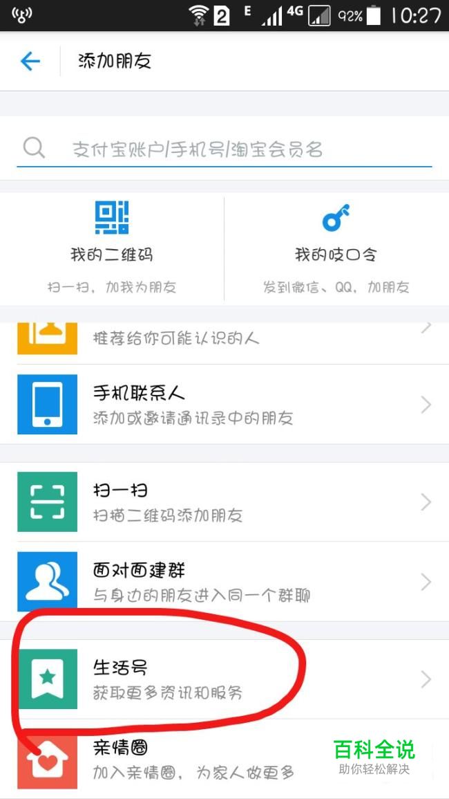 找到界面下面的“生活号”,然后点击生活号,再右滑到分类目录之下。