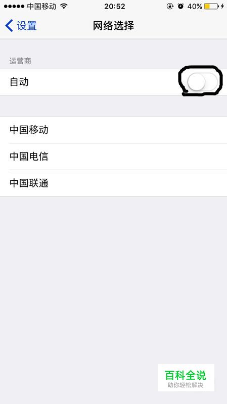 点击圆纽呈关闭状态, 然后选择自己的手机卡类型。