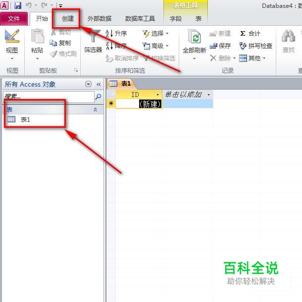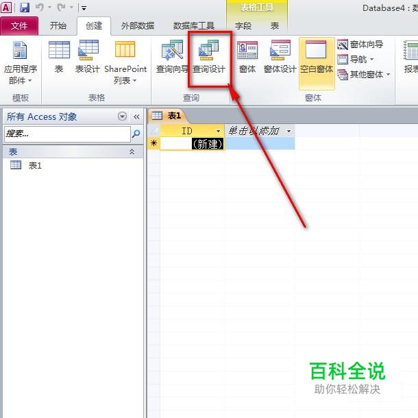首先,打开已经安装好的access数据库,这里我就以2010版本的access来举例说明,如图,打开之后,默认是一张表设计图。接着我们点击“创建”菜单。