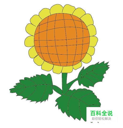 最后将颜色调节为绿色,为叶子及花径填充为该颜色,这样向日葵就画好了,如图所示: