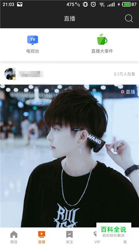 进入直播界面,点击“电视台”