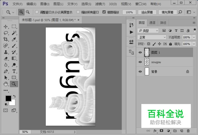 选择文字工具,输入文字;然后,栅格化文字图层。
