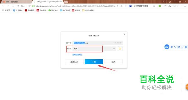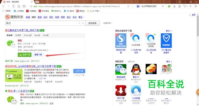 搜狗搜索中搜索“微信”然后点击下载