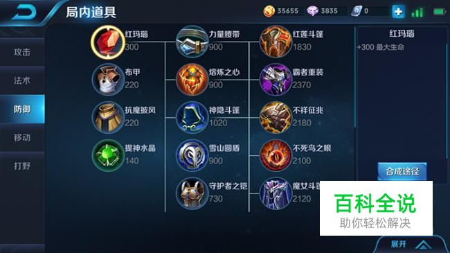 前中期装备:不死鸟之眼。 不死鸟之眼的被动的治疗效果的加成,可以让白起更好的配合队友打团战了。不仅如此,这件装备还提供大量的最大生命的加成、法术防御以及回血效果,这是非常适合最为前排的白起的。