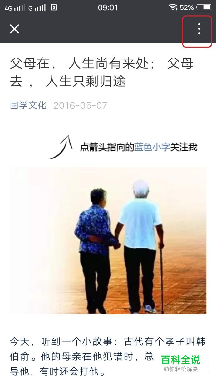 首先,打开微信,找到我们需要打印的公众号文章(试卷同理)。如图所示,点击右上角图标。