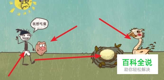 第15关,我们先点击小猪,把母鸡身上的毛吹掉,再点击人就可以去拿鸡蛋了。