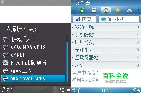 首先要准备的就是手机,但必须要有能上网的功能的,建议使用智能机,为了方便登录,需要先安装一个手机浏览网页的软件,推荐使用UC浏览器,如果各位有其他好的推荐,也可以反映给我们官方的。 1、首先打开UC浏览器,会提示选择接入的方式的,推荐使用的是WAP over GPRS,如果是使用其他方式上网的,也可以尝试一下。