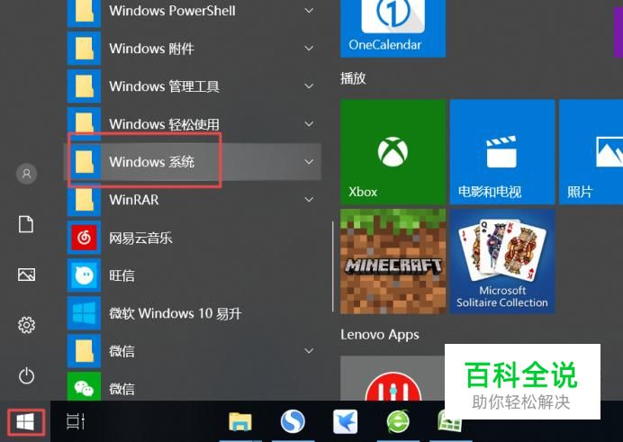 首先,我们点击电脑左下角的微软按钮,然后我们下滑界面,找到windows系统,点击打开它;