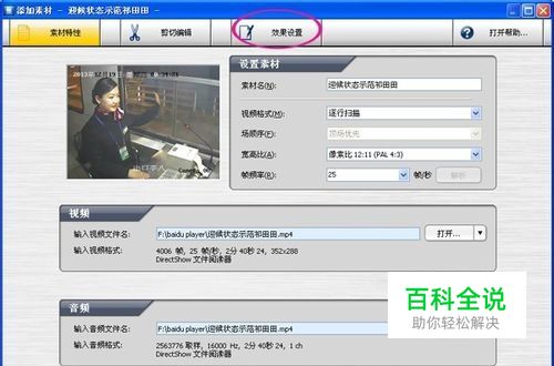 首先运行视频噪音消除软件,然后点击添加按钮把需要去除噪音的视频添加进来,添加视频成功后,视频去除噪音软件弹出下面窗体,软件界面会显示原素材信息,也就是刚刚添加的视频的属性如视频名称、视频格式是否逐行扫描还是隔行扫描,以及宽高比,这个暂时不用去深入理解,然后再点击“效果设置”按钮。
