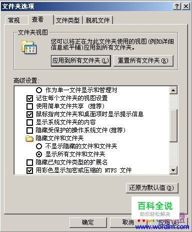 首先在我的电脑中依次点击“工具--文件夹选项--查看”,选中下面的选项: