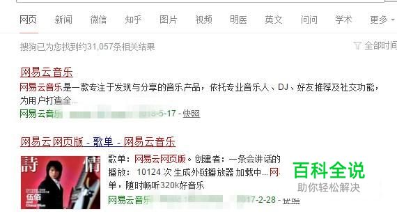首先在搜狗浏览器中输入网易云音乐网页版并点击回车键,如下图所示。