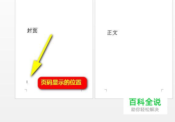 接下来,分别给封面页与正文页添加两种页码。鼠标移到封面页这里,再定位光标在页码显示的位置。