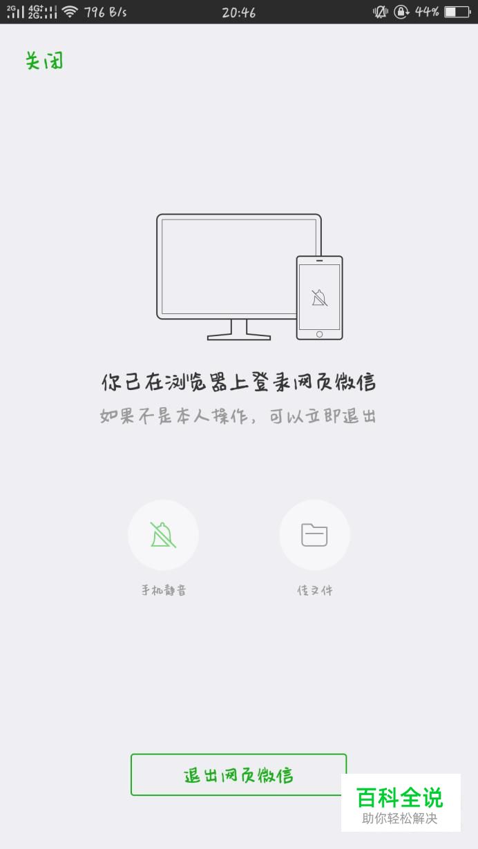 点进提示过后,在屏幕底部会有“退出网页微信”的选项,点击即可。