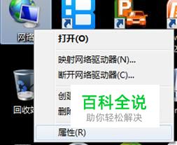 右键单击桌面的“网络”图标,在弹出的菜单里选择“属性”。