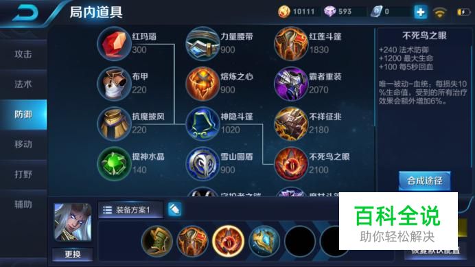 后期装备1:隐忍之足+红莲斗篷+不死鸟之眼+极寒风暴+霸者重装+贤者的庇护 如果是逆风局的话,小编会选择霸者重装+贤者的庇护,这两件装备能够大大提升东皇太一的生存能力。