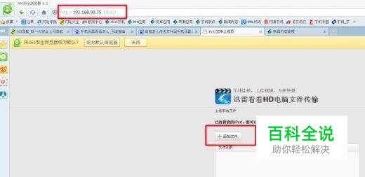 今天为大家介绍手机迅雷看看网页传输功能使用方法,网页传输能够实现无线从电脑上传输视频文件到手机,很方便,很多朋友不知道使用方法,下面就一起学习一下吧~ 1、打开迅雷看看以后,点击屏幕右下角的“个人中心”选项,然后再点击“网页传输”选项,随后即可看到无线传送页面的地址。 2、在电脑上的网页浏览器中输入手机上看到的传送地址,点击“添加文件”按钮添加视频文件。 3、视频文件选择好了以后,点击“发送”按钮。 4、这时会看到手机中的页面会有文件传送进度显示,等待文件传送完毕以后,点击迅雷看看底部的“本地视频”选项即可看到从电脑上传的文件了。 怎么样?是不是很方便呢?机友们自己去操作操作吧~