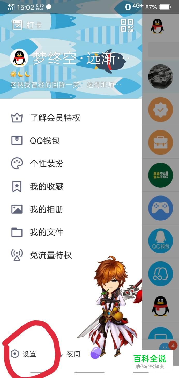 点击QQ上的头像,点击左下角的设置