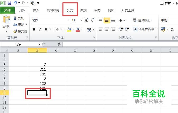 之后我们选中图示中的单元格,然后点击公式;