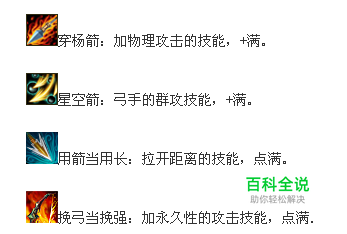 必满技能 以上加点适合于50级以前,50级后出进阶技能,此时,只需要将穿杨箭改为1级出急退就可以了,其他不变,剩余的技能点可用于进阶系技能。