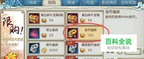目前已知的交易金币只能用元宝交易成金币,还不能用其他诸如仙灵值,帮贡,银币换取金币 金币交易方法 1.打开商城界面 2.进入限购页面 3.找到金币福袋 4.用元宝购买金币福袋即可 5.100元宝换10000金币
