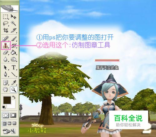 用PS把你要调整的图打开,并选用:仿制图章工具