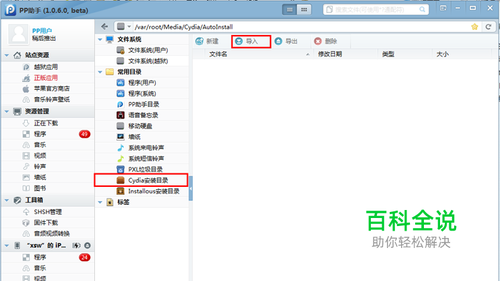 第三步,访问文件--常用目录--Cydia安装目录--导入